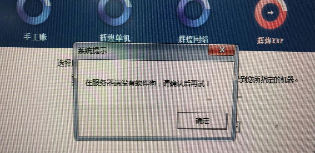 前几天有网友安装好了管家婆辉煌Ⅱ TOP+15.0服务端,想在非当地城市玩耍,然后远程客户端用花生壳或路由侠或DDNS连接管家婆辉煌Ⅱ TOP+15.0服务端提示“在服务器端没有软件狗,请确认后再试!”,如下图所示
