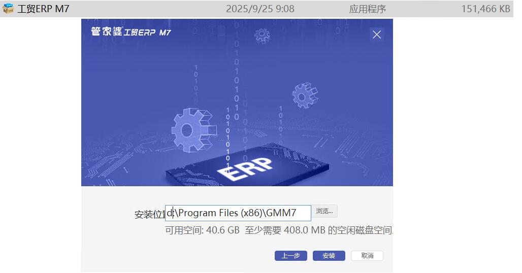 1、官方下载“管家婆工贸ERP M7 v25.0”版本,解压得到“工贸ERP M7.exe”文件,右键管理员模式安装即可!