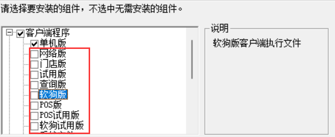 2、最下面的“加密锁驱动程序”一定不要勾选,要去掉,不然在Win10中安装必蓝屏,带狗只能在Win7系统中使用!(带狗想在Win10中使用,可参阅我下面的文章,内容收费哦!)