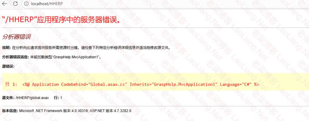 今天有网友在群里竟然装了管家婆辉煌ERP H5 16.6,然后装完打开提示“分析器错误消息未能加载类型GraspHelp.MvcApplication1”如下图所示