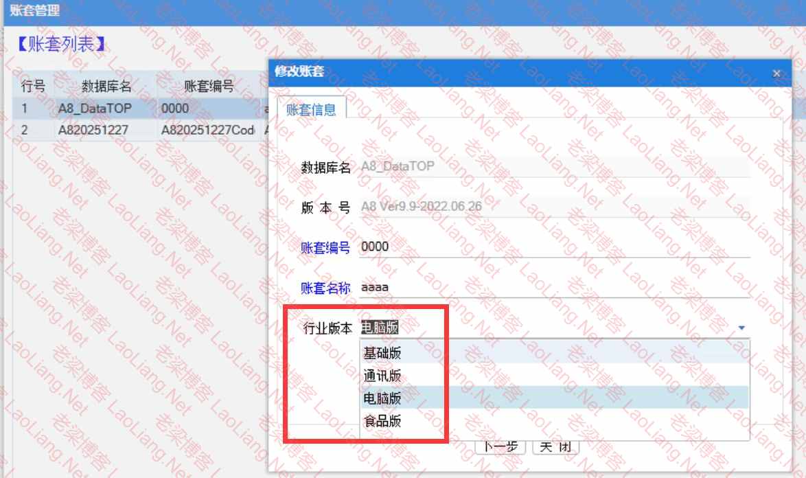 管家婆分销ERP A8 TOP正式版9.9.5账套管理里行业版本切换后登录退出又变回原始行业账套的说明 Ver9.9.5-2022.06.26