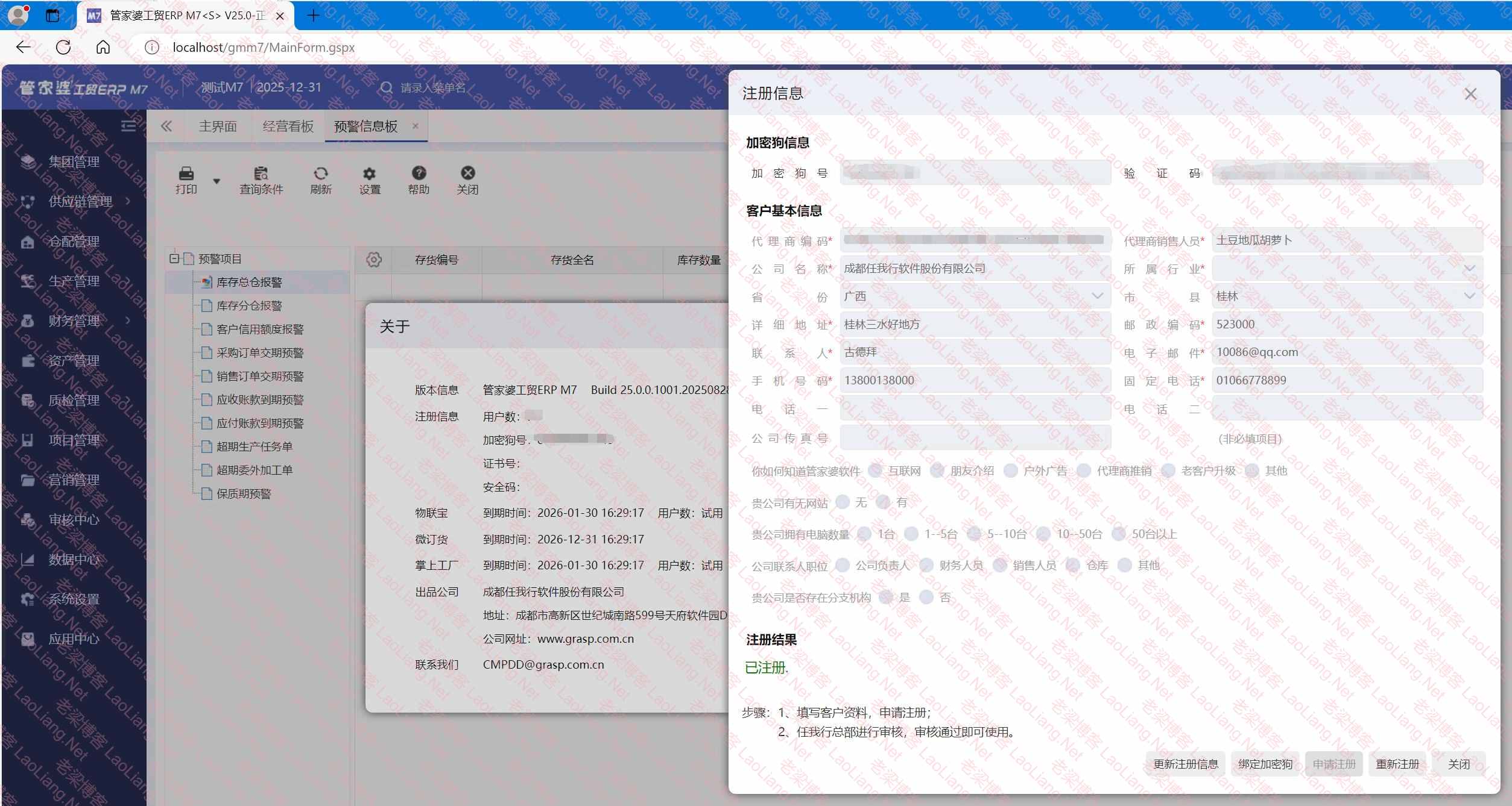 今天有网友询问了一些奇奇怪怪的要求,管家婆工贸ERP M7Build 25.0.0.1001.20250828关于注册信息的框框能不能填满~~尴尬了~又不是~~