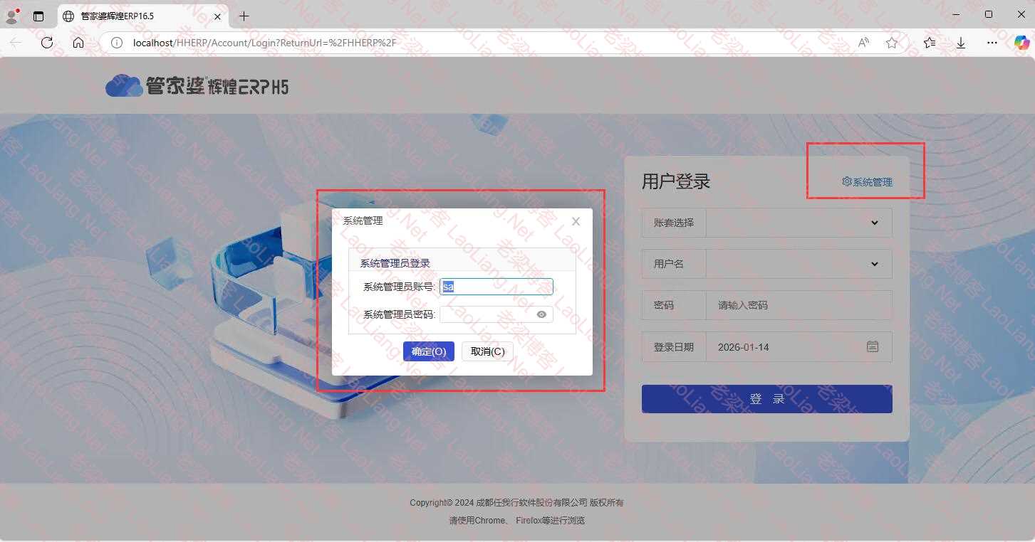 今天有网友找到我说他在Windows 11系统安装了管家婆辉煌ERP H5 16.5,安装都是一切正常,但是安装完成也可正常打开页面,但是点击页面上的“系统管理”就无任何反应,就是下图所示的,不弹出系统管理设置这些