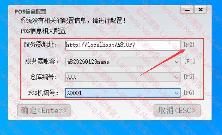 运行安装完成以后的零售pos图标,填写erp软件的访问地址,按F2获取对应账套建立的pos终端信息,点击确定保存,就可以正常登录pos操作,如下图所示
