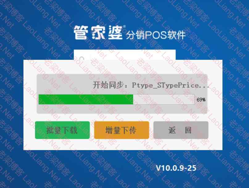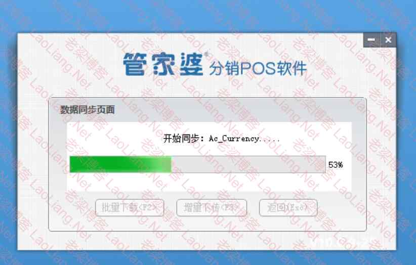 2、上面信息都输入正确,点击确定,就会开始管家婆分销POS软件数据同步页面,如下图所示