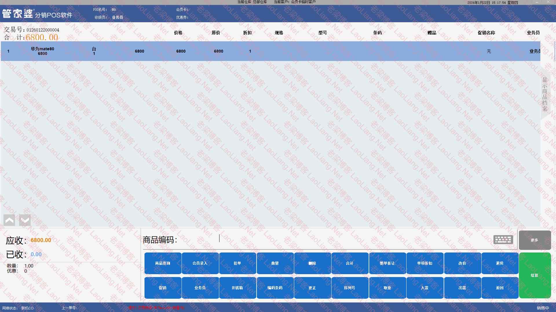 4、一切信息都正确后,就登录进来,如下所示,就是分销POS标准版的样子