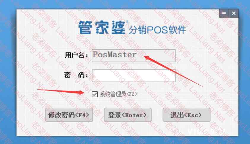 3、稍等片刻的管家婆分销POS软件数据同步页面完成,就出现登录页面,输入自己建立的账户,或直接用系统管理员PosMaster登录,如下图所示(第一次登录需要先修改密码)