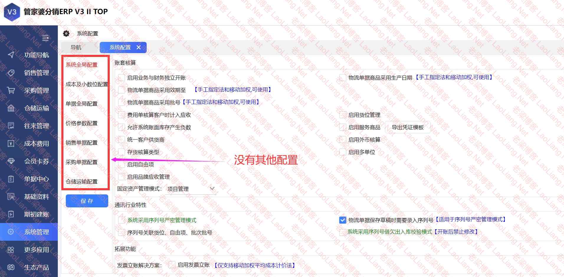 管家婆分销ERP V3 II TOP系统配置里没有其他配置?