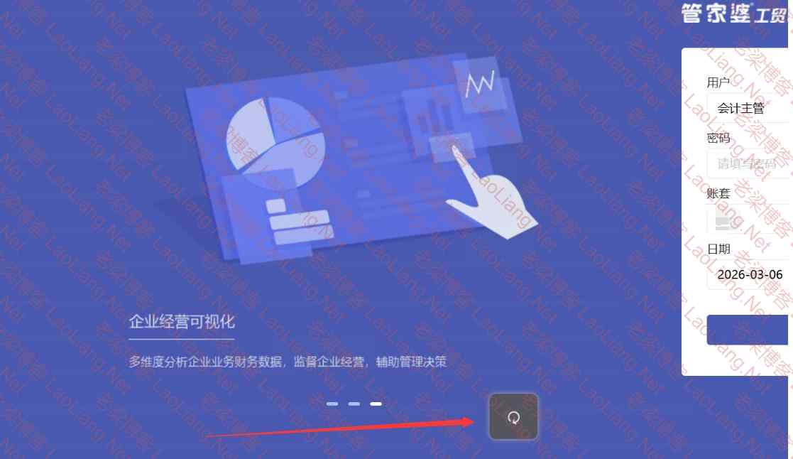 今天有网友找到我说,他家的管家婆工贸ERP M7貌似出了故障,不管咋登录,就是一直显示转圈圈,如下图我箭头所示,就是转圈圈,不能登录~~~