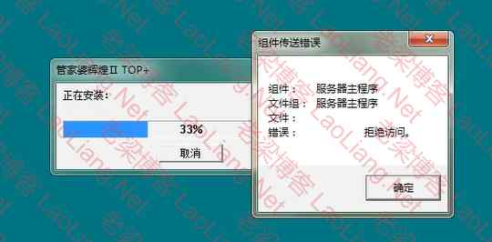 前几天有网友说在安装管家婆辉煌Ⅱ TOP+13.32的时候出现错误,提示“组件传送错误 服务器主程序拒绝访问”,如下图所示