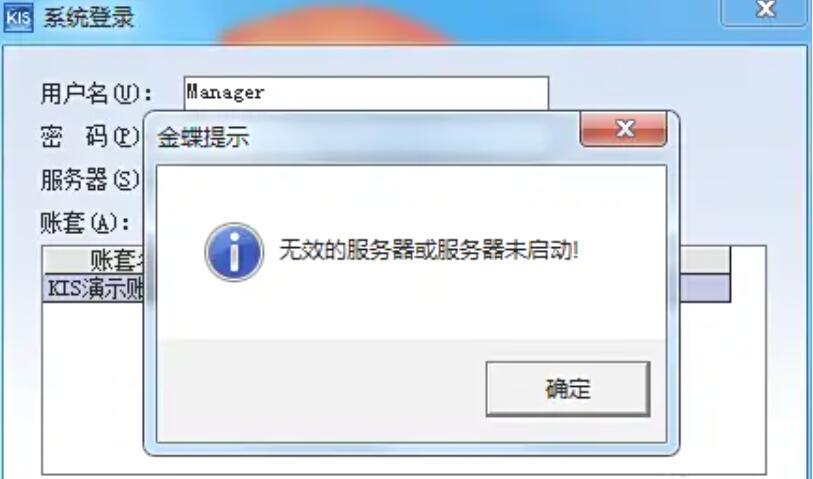 金蝶kis专业版16.0在断网环境下,设置离线密码登录系统管理,一段时间后,客户端打开就提示无效的服务器