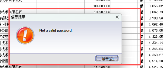 昨天有网友在群里发了一个错误,是金蝶专业版导出数据提示“Not a valid password. ”如下图所示