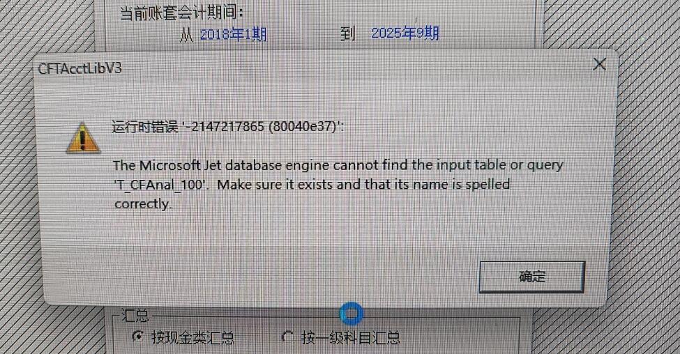 其实翻译过来就是Microsoft Jet数据库引擎找不到 'T_CFAnal_100'这个表~~