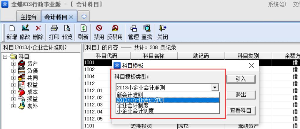 金蝶KIS行政事业版14.0支持企业建账特殊版如何引入会计科目