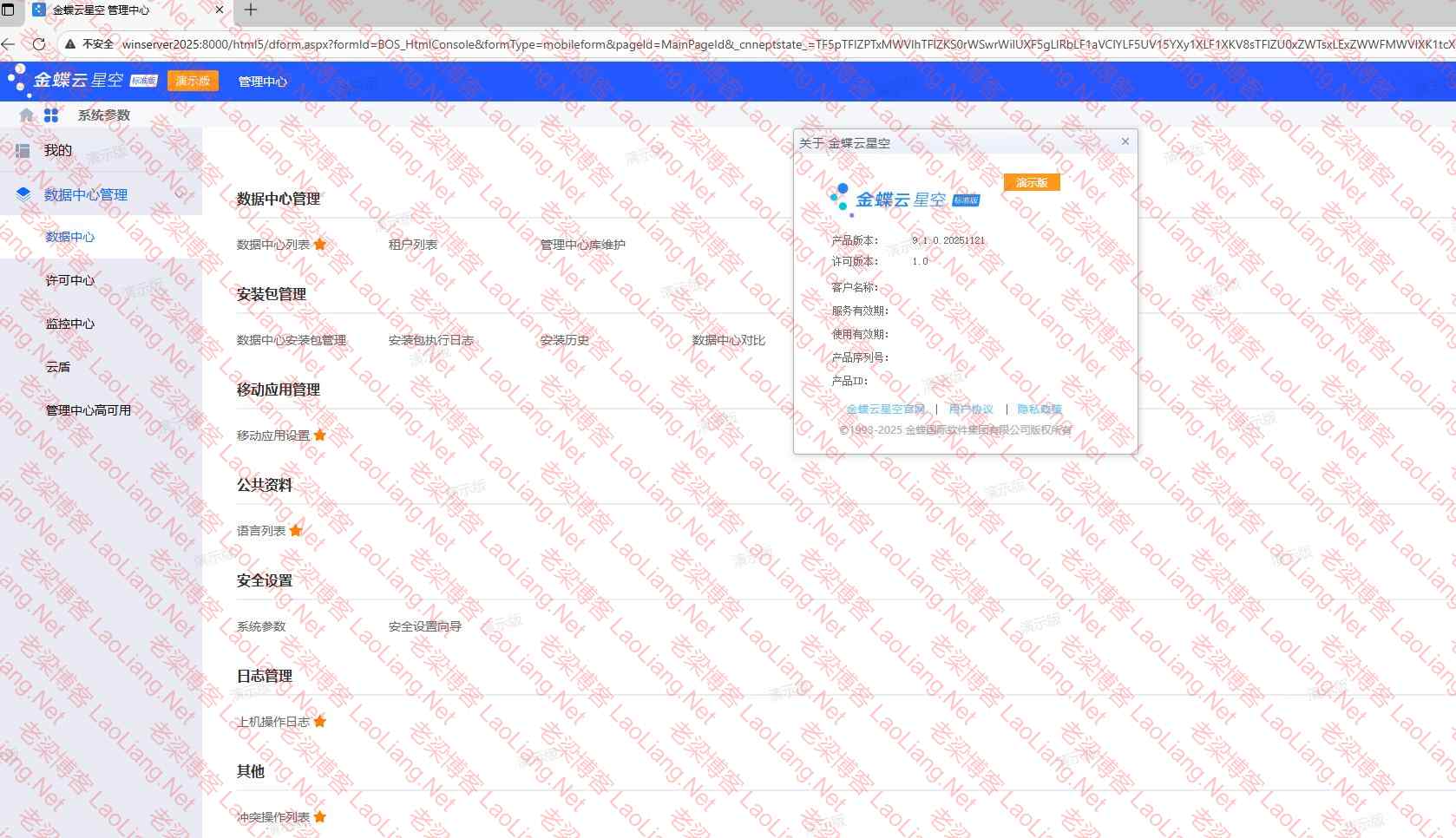 最近金蝶云星空官方20251120发布了金蝶云星空企业版9.1.0.20251120新的补丁, PT-163016构建号9.1.644.11与金蝶云星空标准版9.1.0.20251121新补丁,PT-163017构建号9.1.644.13,再导入demo授权的时候,还是官方正式版授权,都出现了许可引入验证功能,如下图所示