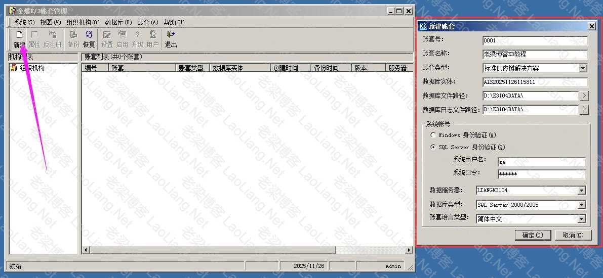 2、登录了金蝶K/3账套管理,点击左边的新建,就会新建账套,输入自己相关的信息即可,如下图所示