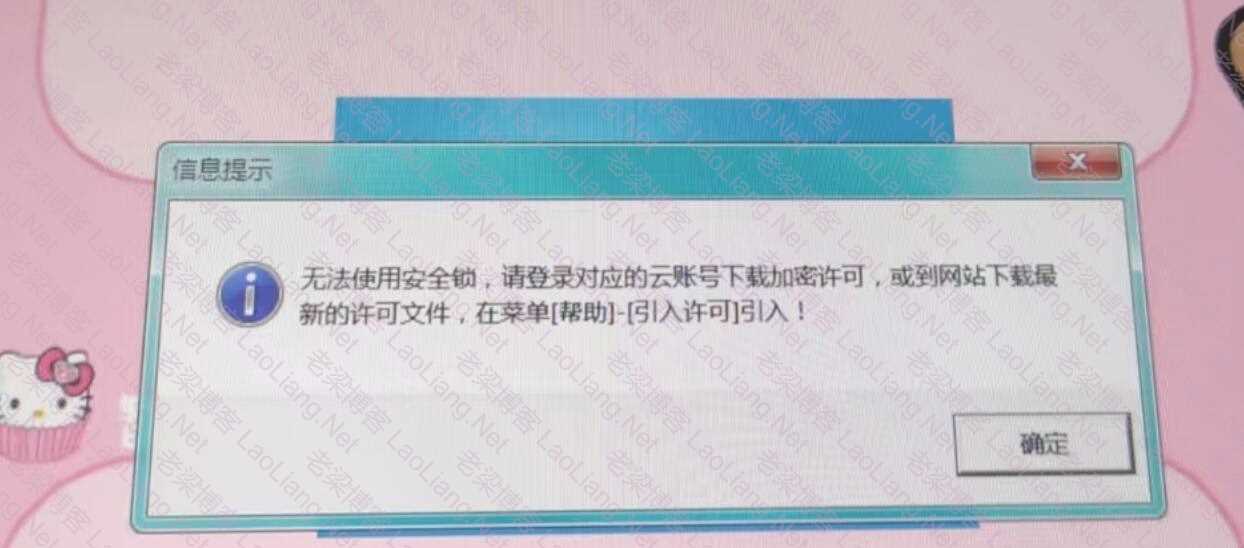 有网友一觉醒来到工位,发现自己的金蝶kis记账王11.0突然需要激活,竟然无法工作了,提示“无法使用安全锁请登录对应的云账号下载加密许可,或到网站下载最新的许可文件,在菜单[帮助]-[引入许可]引入!”如下图所示