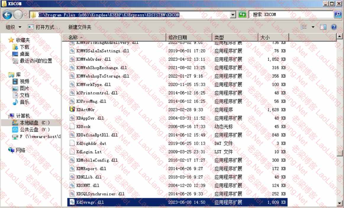KdSvrmgr.dll路径:C:\Program Files (x86)\Kingdee\K3ERP\K3Express\KDSYSTEM\KDCOM