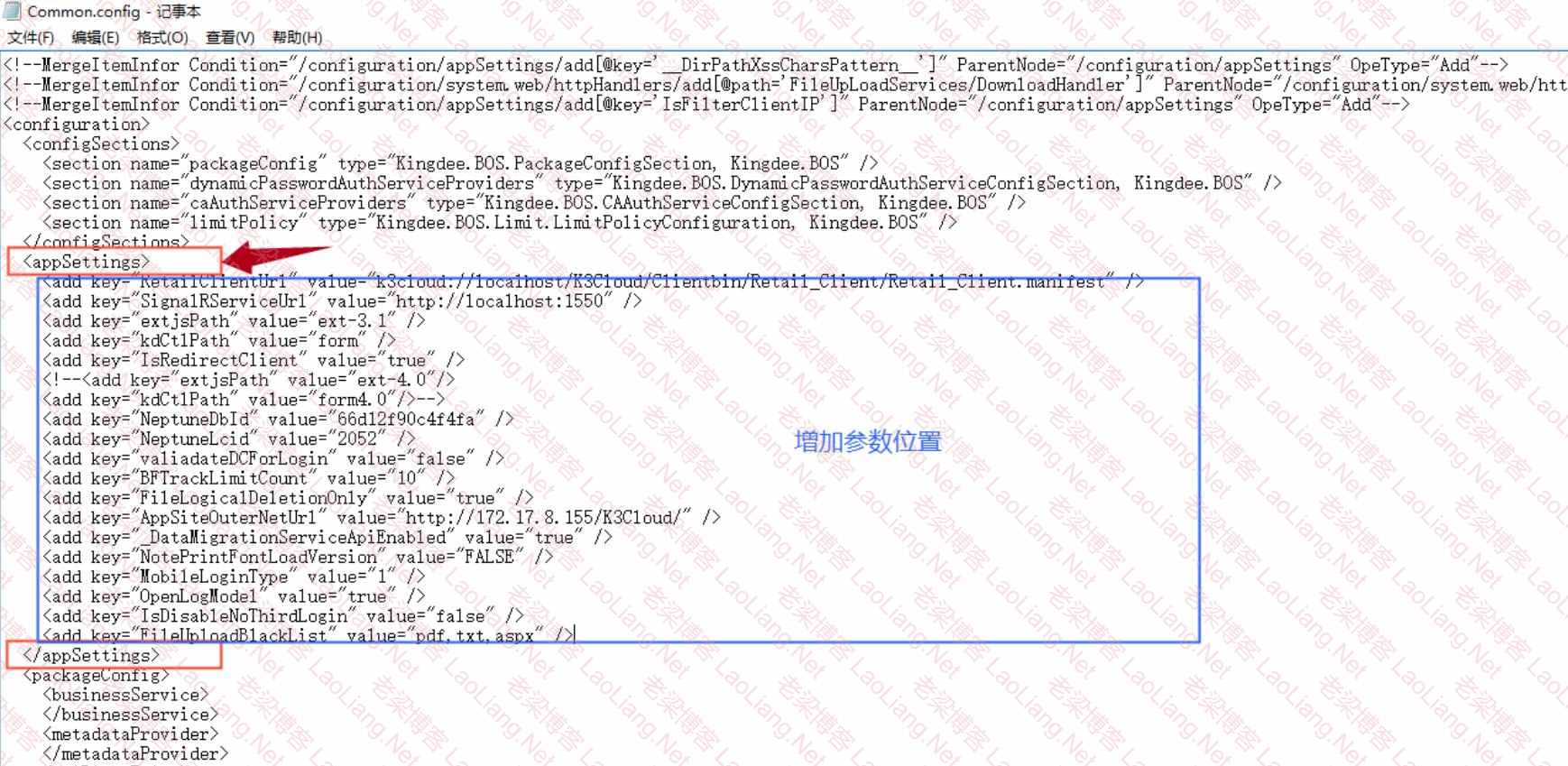应用服务器中需要更改的Common.config配置文件位置,以及修改的参数节点如下: