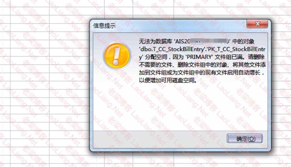 意在交流学习,欢迎赞赏评论,如有谬误,请联系指正;转载请注明出处: » 金蝶kis商贸版8.0保存单据提示“无法为数据库中的对象'dbo.T_CC_StockbillEntry'.'PK_T_CC_StockbillEntry分配空间,因为"PRIMARY'文件组已满。”的说明