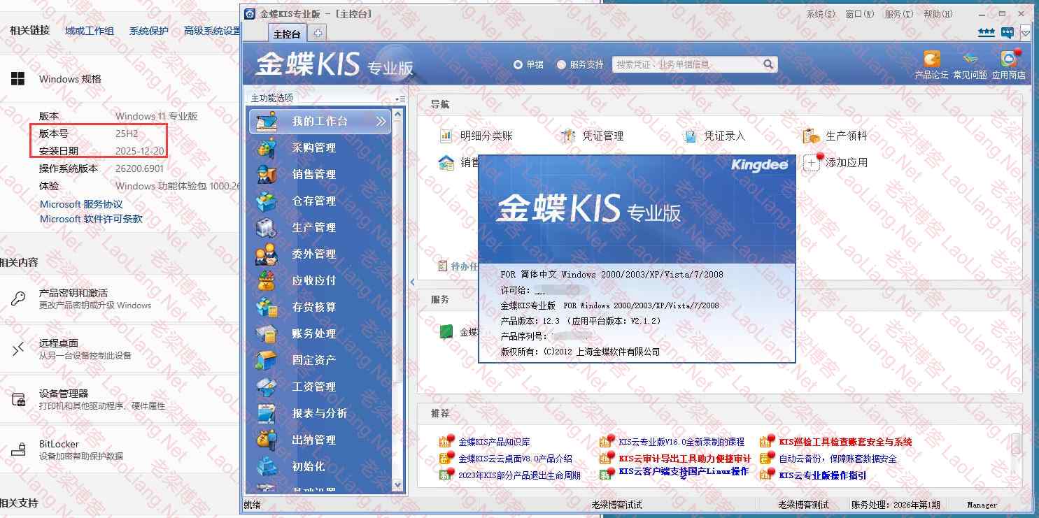昨天有网友加我说了解一下金蝶kis专业版12.3在Windows 11 25H2系统下安装的方式,他安装的有些错,问了不少问题,最后我说收费处理,就崩了,哈哈~~那也顺便自己写一下吧~~~