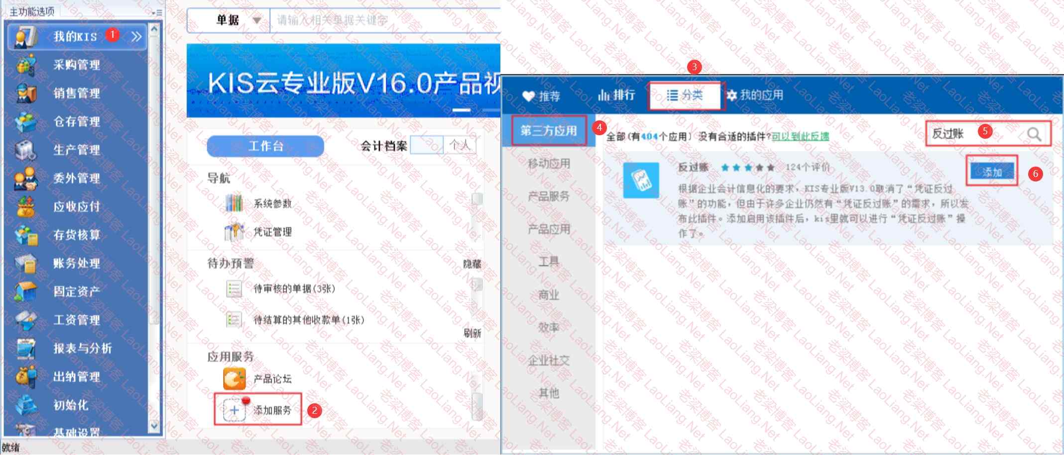 1、点击---我的KIS----应用商店----分类---第三方应用-----搜索反过账后添加即可!
