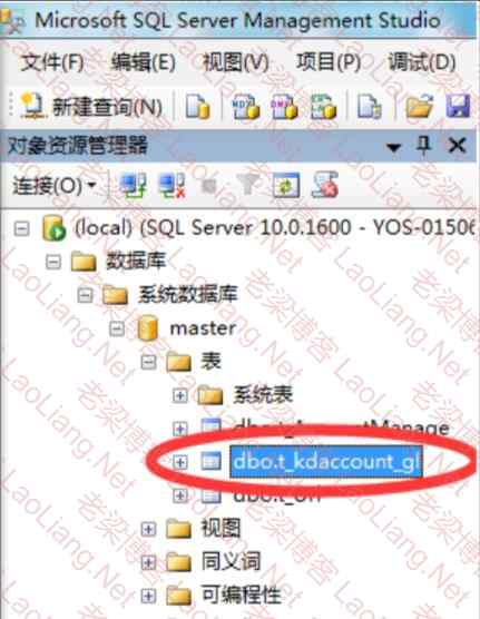 使用以上SQL语句就可以创建master.dbo.t_kdaccount_gl表,创建完成就可以正常使用了~~~当然,也不排除其他错误