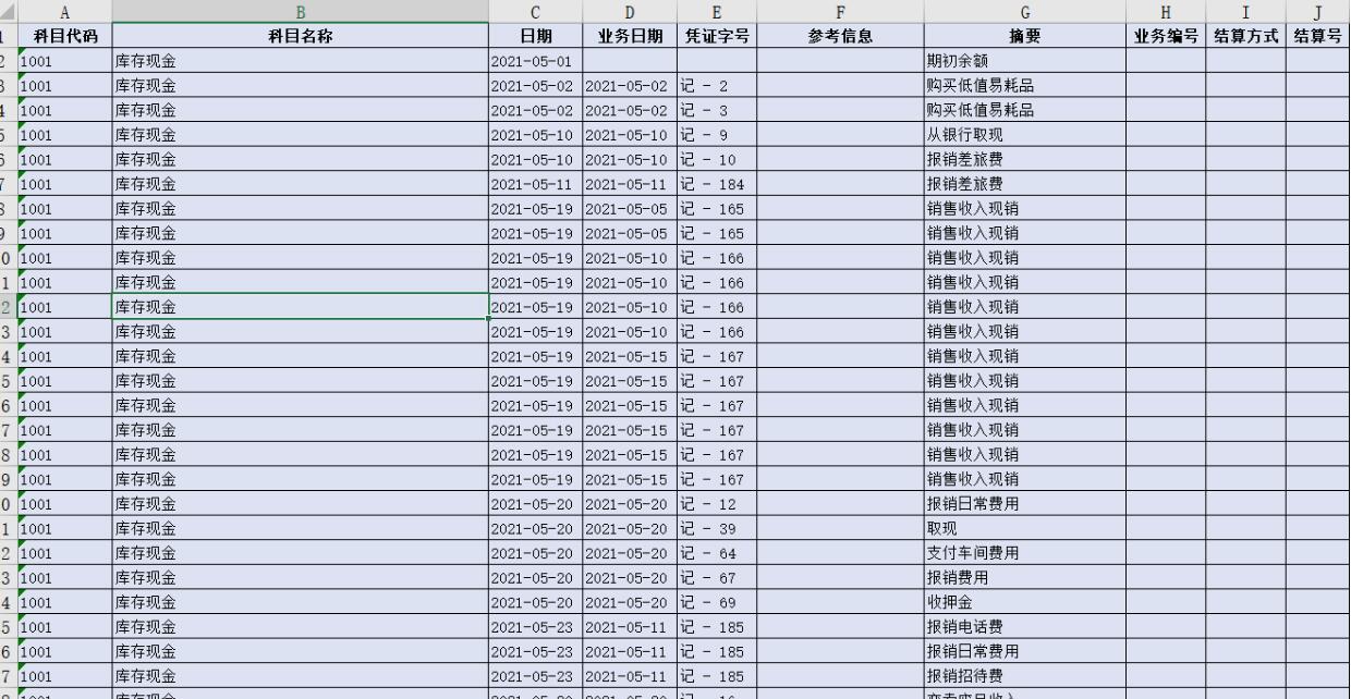 下图为未勾选“引出数据每行显示科目代码和名称”的数据: