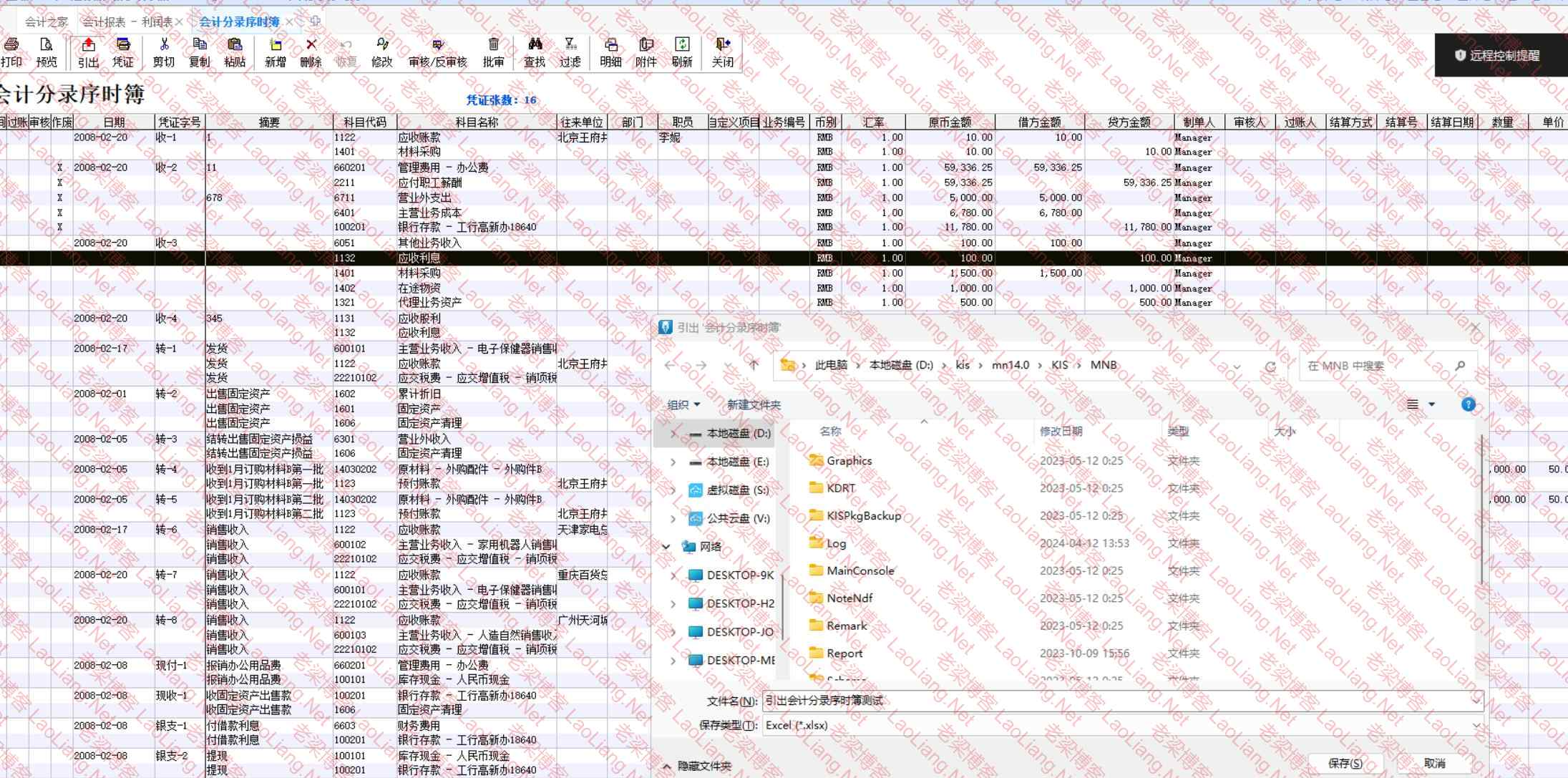 金蝶kis财务系列引出会计分录序时簿的方式方法