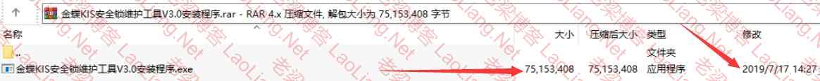 1、下载的金蝶kis安全锁维护工具3.0版本有问题,如下图所示“旧的文件是2019-7-17,文件大小是75153408,文件日期是2021-10-20,文件大小是75202560”,问题就在这里,用2021年版本即可!