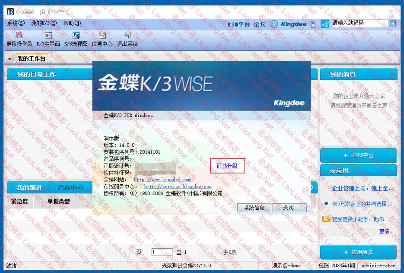 金蝶K3Wise14.0导入授权提示“无效的K3许可文件,不能注册!如果是旧版本许可文件,请在客户端主控台或账套管理的“帮助”-“关于”界面进行证书升级!”的说明