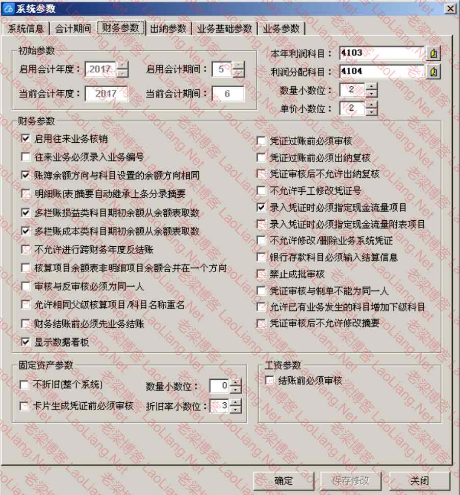 ②【出纳参数】字段说明: