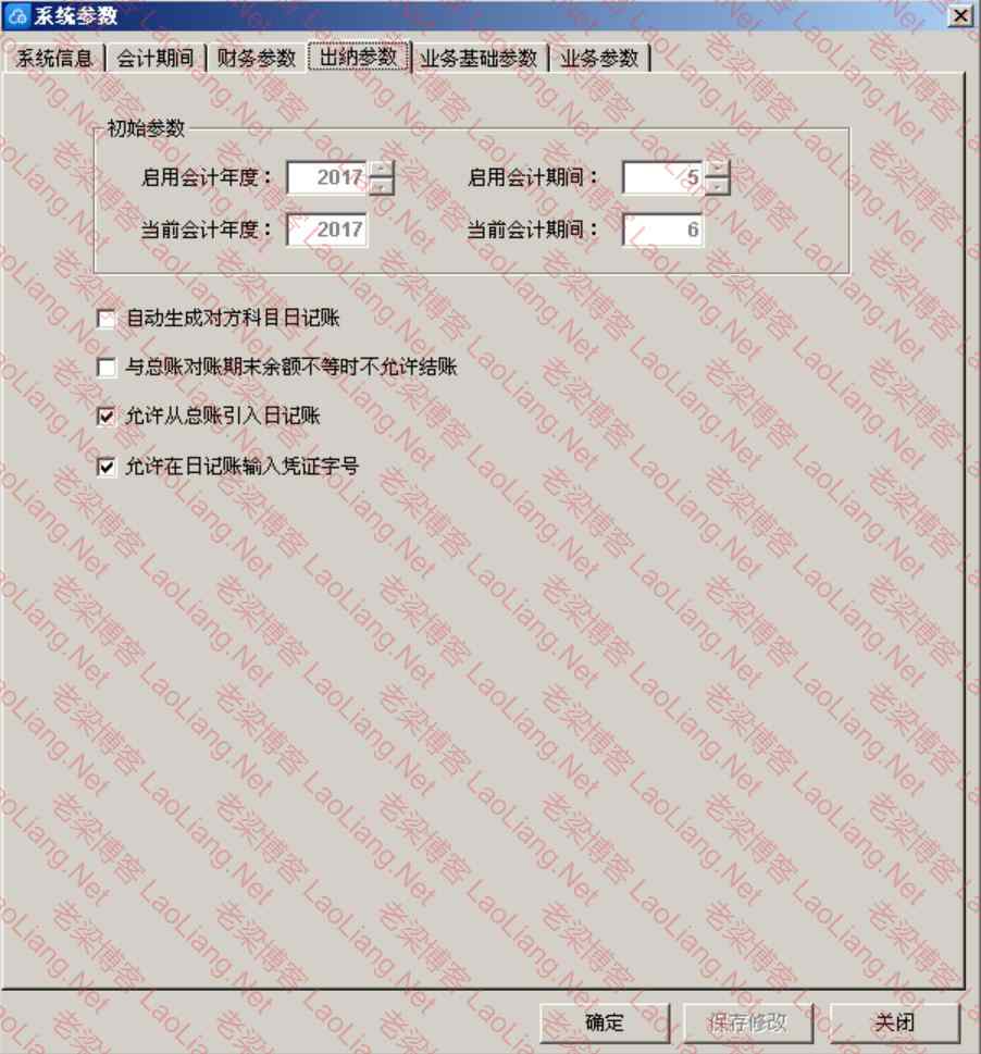 ①【出纳参数】界面: