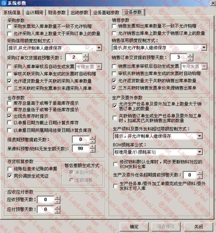 ①【业务基础参数】界面:
