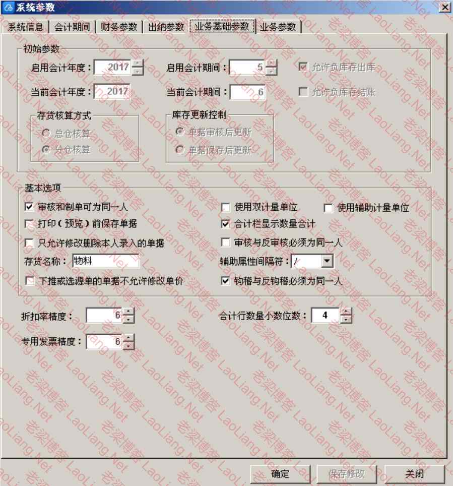 | 折扣率精度 | 精度会影响到采购、销售系统中使用到折扣率的单据,系统默认该精度为四位,录入时 只能录入0~8的整数 |