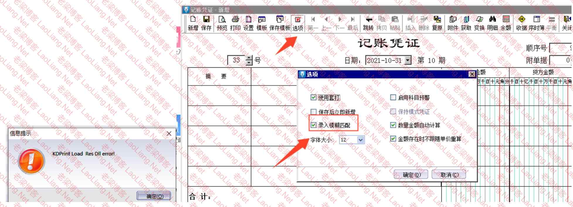 这不还有金蝶kis标准迷你版新增凭证提示kdprint load res dll error,无法录入模糊匹配,选了参数录入模糊匹配,科目录入汉字依旧无法录入模糊匹配,如下图所示