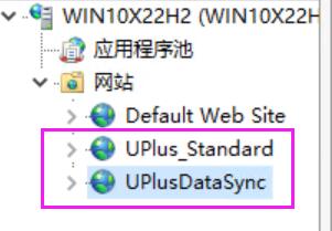 11、再看“Internet Information Services (IIS)管理器”里多了两个站点“UPlus_Standard与UPlusDataSync”,都是U+所需的东西!