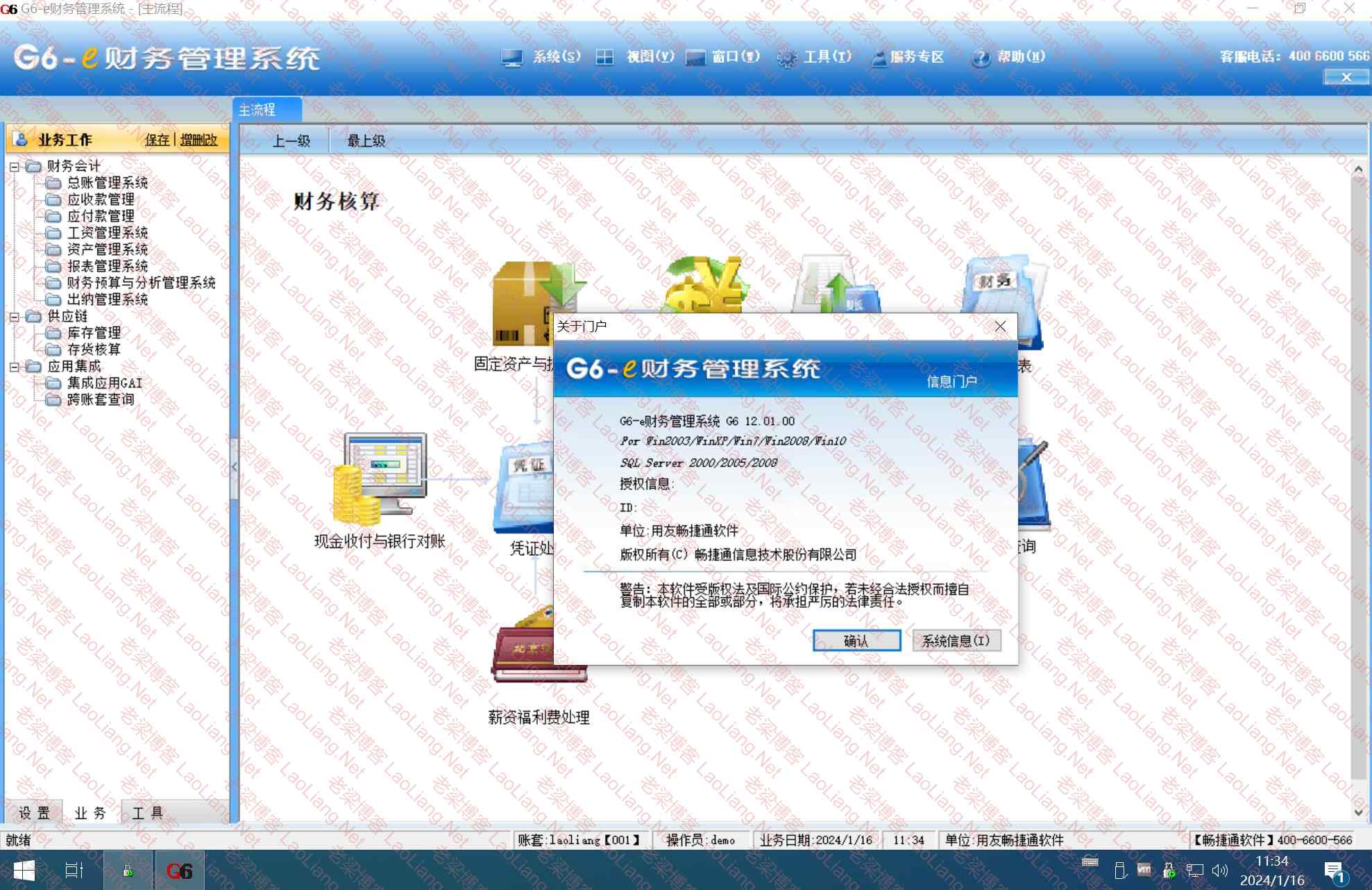 【概要描述】:总账系统、往来管理、现金银行、出纳管理、项目管理、财务报表、工资报表、固定资产、财务分析等模块。【用友G6-e财务管理系统】