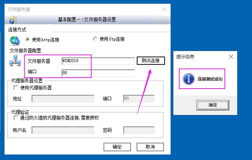 2、输入服务器ip或计算机名称及iis端口进行测试连接即可,直到出现连接测试成功方可,如下图所示