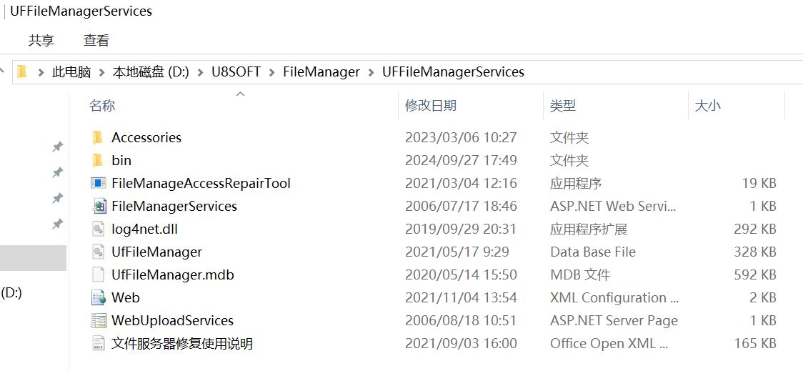 ④、检查X:\U8SOFT\FileManager\UFFileManagerServices下的文件是否与正常环境一致,如下图所示