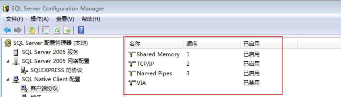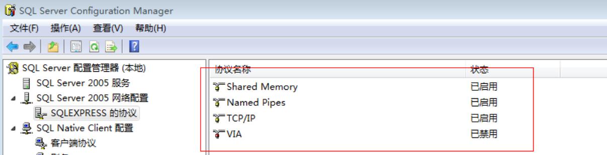 在开始 -- 程序 -- SQL2005 -- 配置工具 -- SQL Server Configuration Manager ,然后弹出下面对话框,有两个地方需要禁用。MSSQLSERVER的协议(或者是SQLEXPRESS的协议)和客户端协议里。然后在SQL Server 2005里在重新启动就可以了。