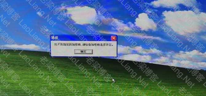 今天有成都的网友找到我说,他的用友U852使用正常,做了系统就不正常了,提示“错误 找不到指定的加密锁请检查加密锁是否存在。”,如下图所示