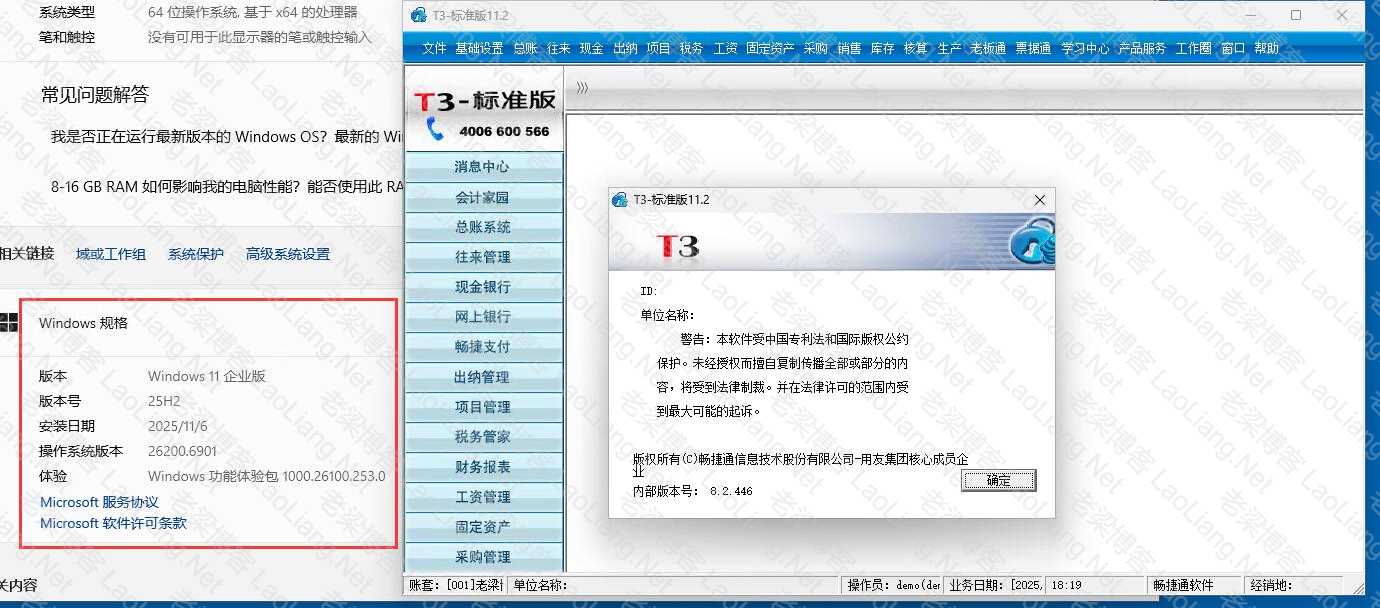 今天有网友在群里说Windows 11 24H2系统下不可以安装用友T3标准版11.2,即使能安装版本,也不能安装补丁~~~这都操作过多少次了,这事儿比较简单,不是啥难事儿~~那就操作一番