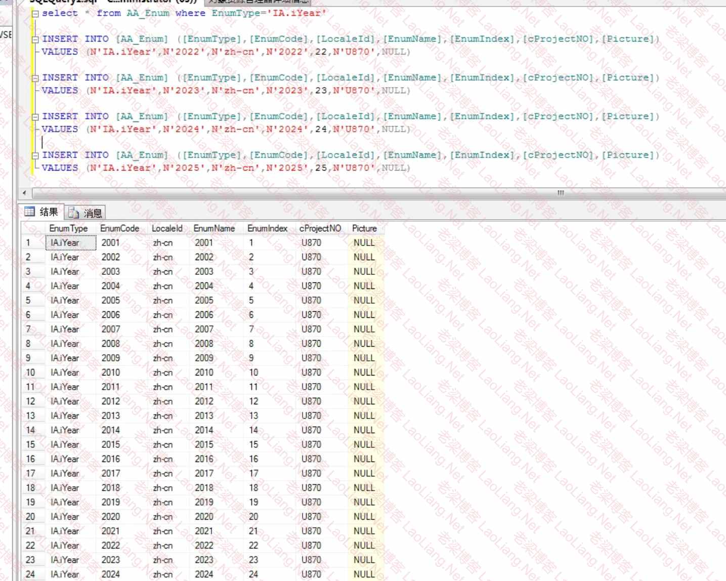 2、用友U8软件本身的BUG,直接手工在表中增加枚举数据 在表【AA_Enum】 中增加记录,【EnumType】字段值为【IA.iYear】,针对账套库,可以参考以下语句