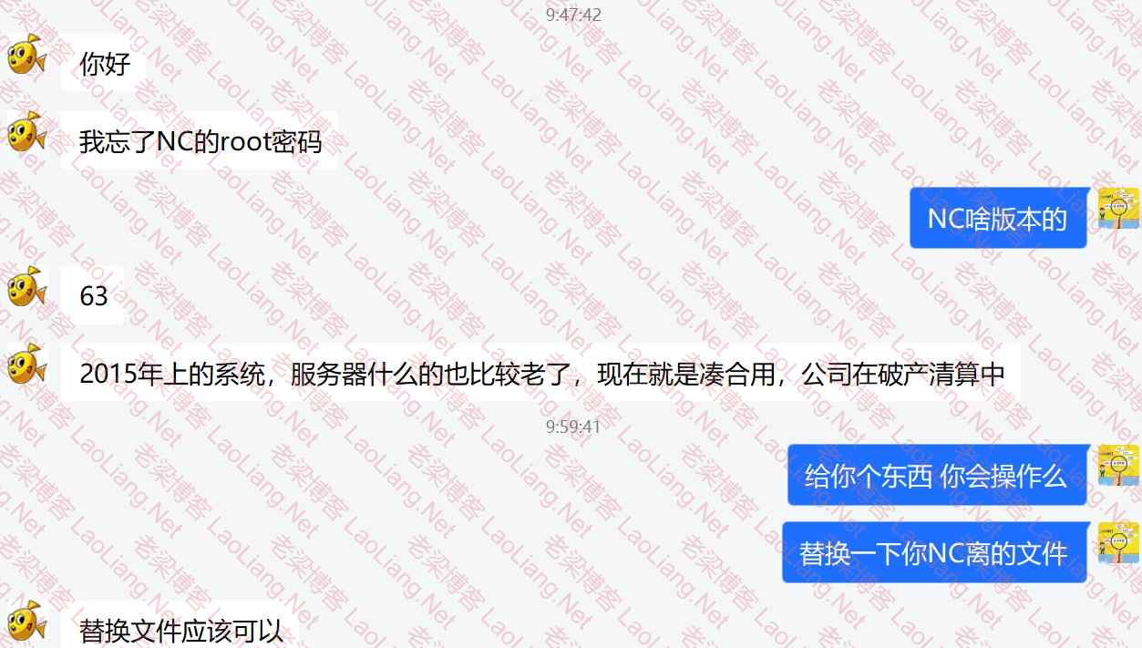 早上有网友找到我说,她家很老的用友NC6.3产品忘记了root密码,问有啥办法没有;