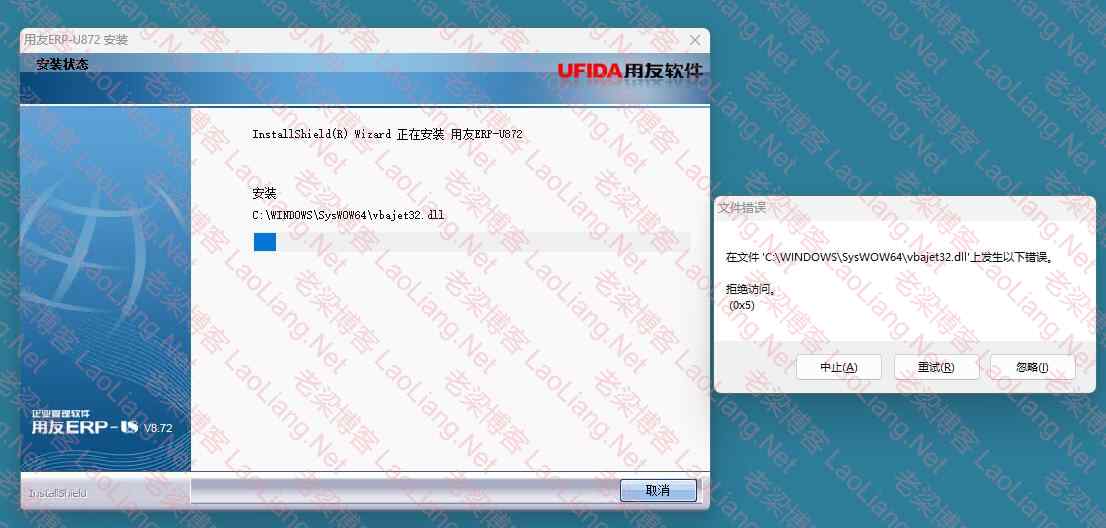 Windows 1125H2安装用友ERP872提示“在文件 'SysWOW64\vbajet32.dll'上发生以下错误。拒绝访问(0x5)”的说明