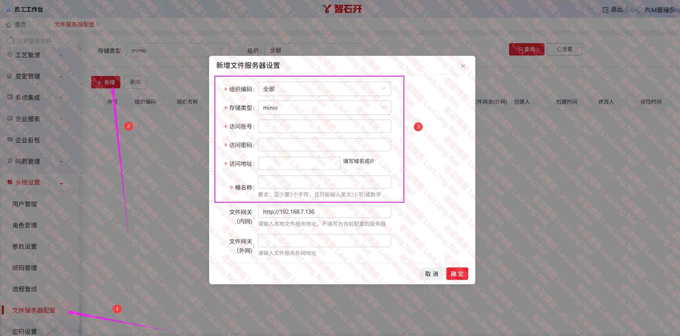 可是网友又问在哪里设置呢?其实就是用智石开PML管理员账号administrator登录,选择---系统设置----文件服务器配置----新增---新增文件服务器设置即可!