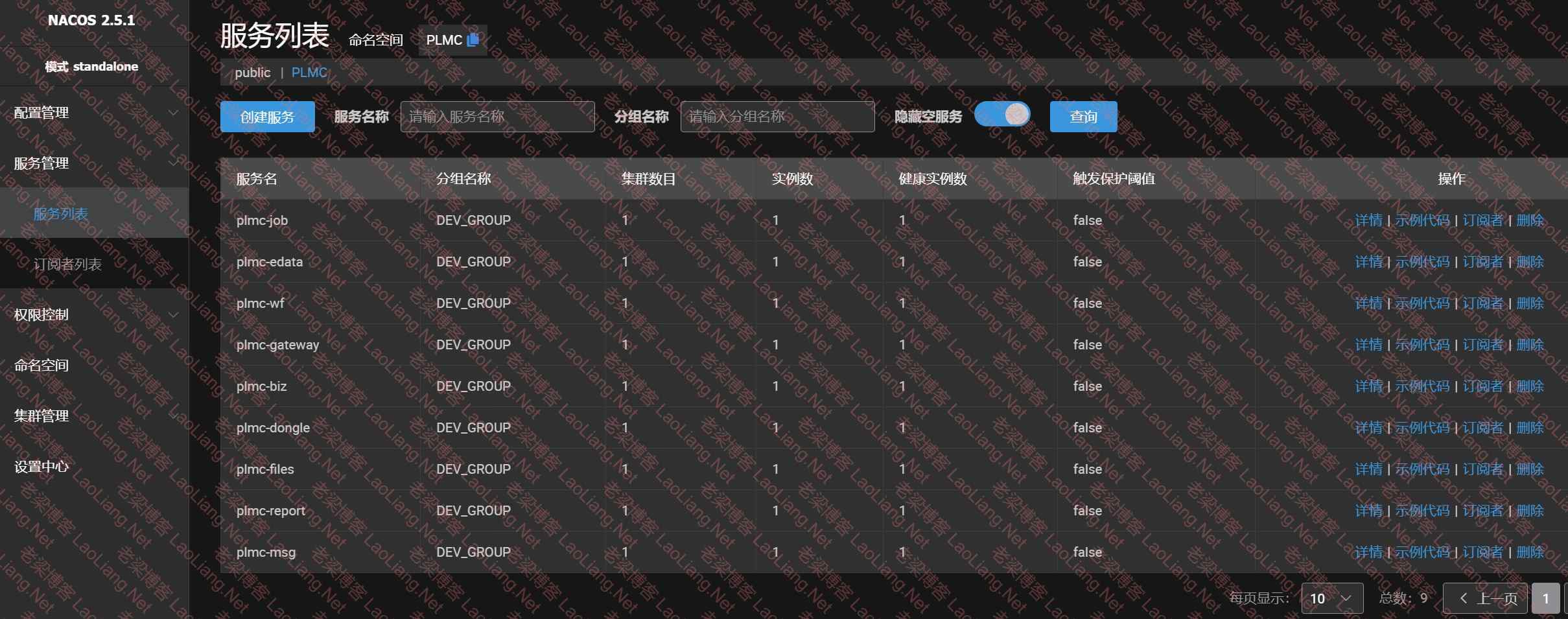 所有应用部署完成,请登录nacos确认服务是否注册成功,否则请查看/data/plmc_app/logs目录下日志!!!。