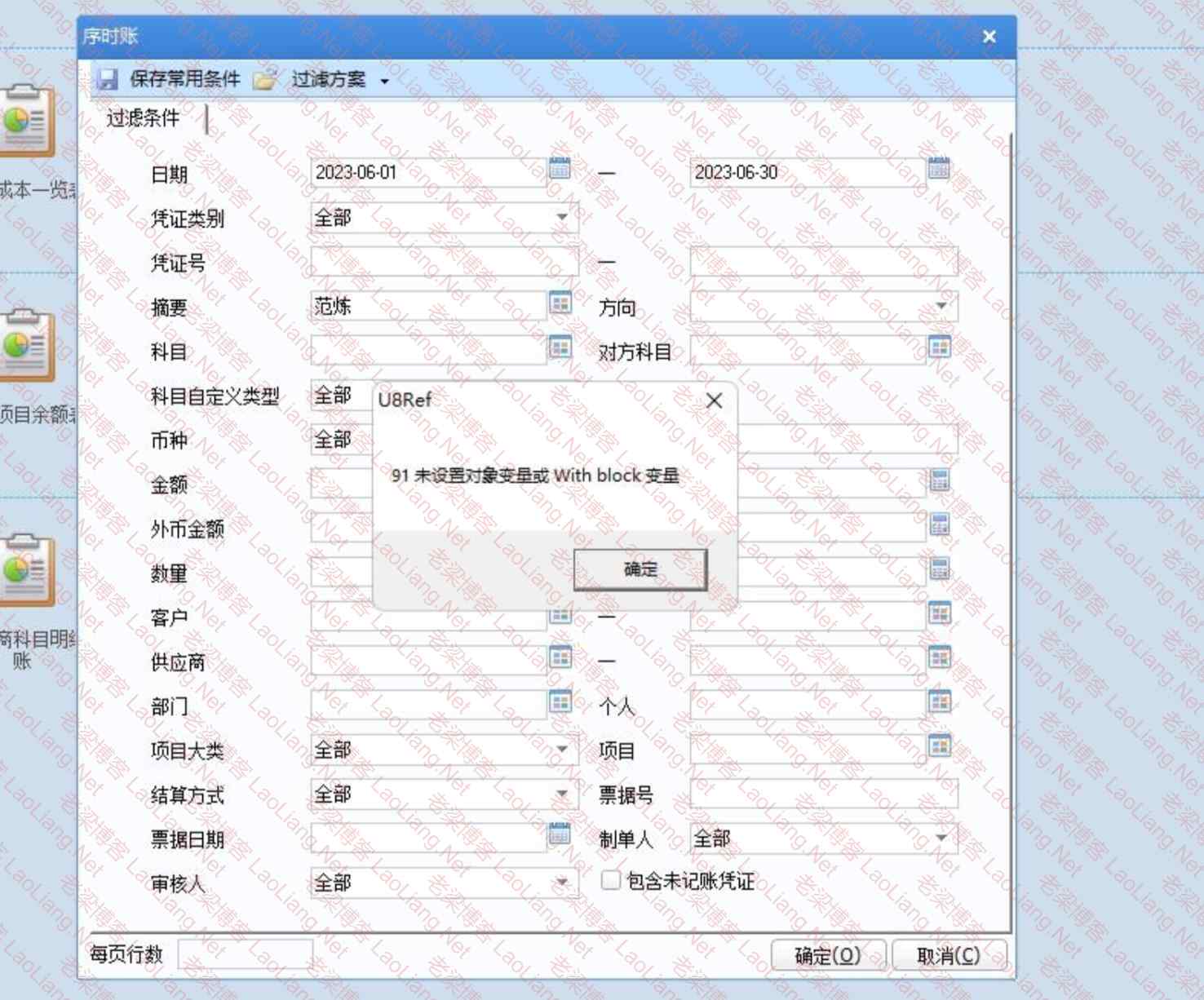 用友U8+序时账提示错误“U8Ref 91未设置对象变量或with block变量”的说明