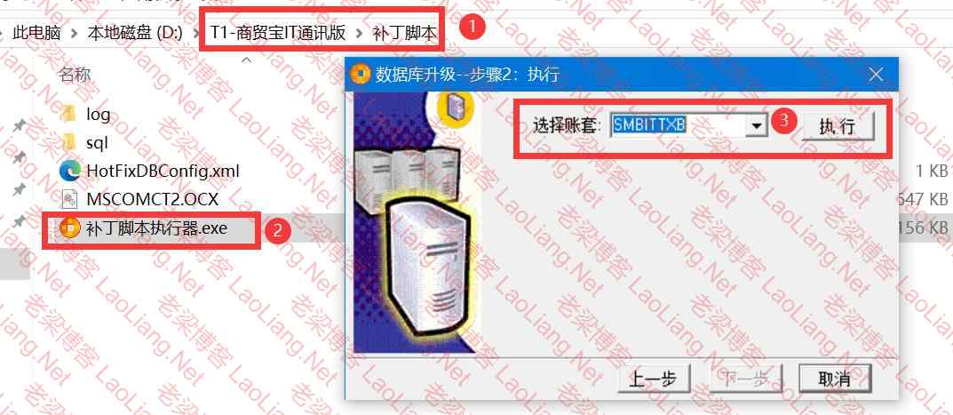 直接打开T1-商贸宝IT通讯版安装路径如“ D:\T1-商贸宝IT通讯版\补丁脚本\补丁脚本执行器.exe”,直接右键管理员模式运行“补丁脚本执行器.exe”,选择自己的数据库,点击执行即可,如下图所示,很简单,耐心等待升级完成即可!